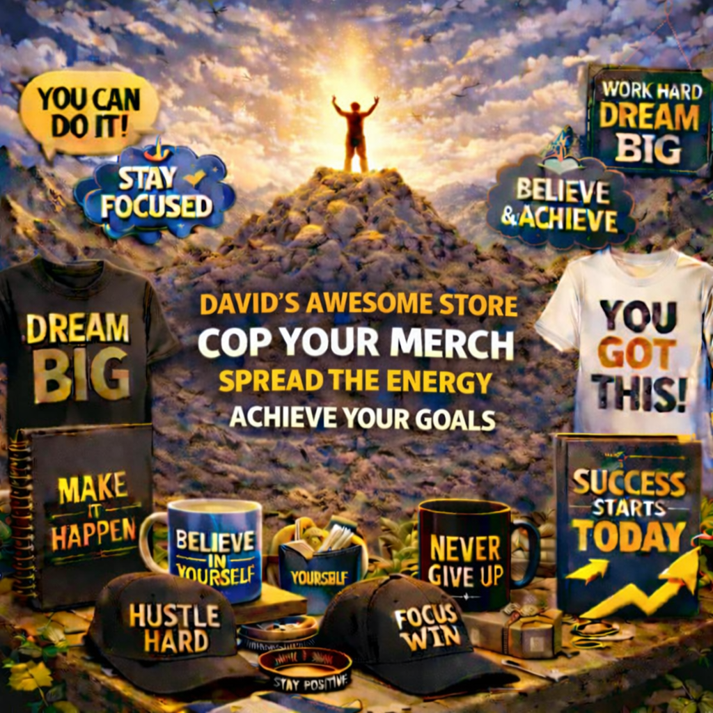 David’s Awesome Store began after David once overslept and arrived two hours late to work, a moment that made him frustrated but also realize he wanted more from life and do much better. After seeing the unemployment chart and negative energy rise in the news, that pushed him to create something that could uplift and motivate others. After failed attempts with Amazon and eBay, he launched a Shopify store built around motivational quotes to inspire people to break the 9 to 5 cycle and pursue their goals.